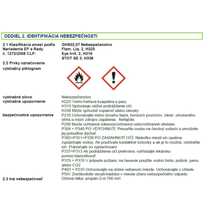 | Typ čistiaceho prostriedku | dezinfekčný roztok |