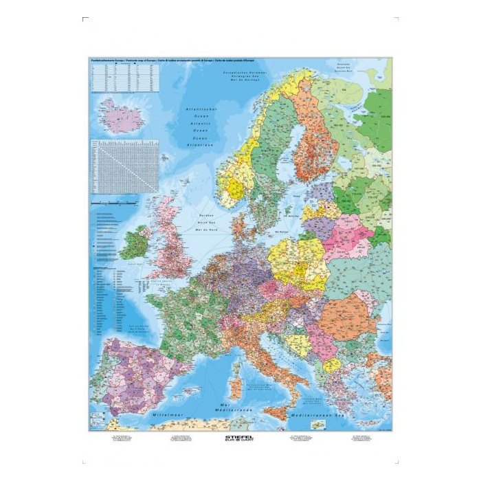 Nástenná mapa Európa s PSČ je podrobne spracovaná. Na mape nájdete všetky obce a mestá s podrobným vyznačením prideleného PSČ. Umožňuje presnú identifikáciu PSČ. Mapa je určená pre špedičné firmy. Je vhodná na trvalé vyvesenie. Je laminovaná a lištovaná. Mierka 1:3,6 mil., rozmery 100 x 140 cm.