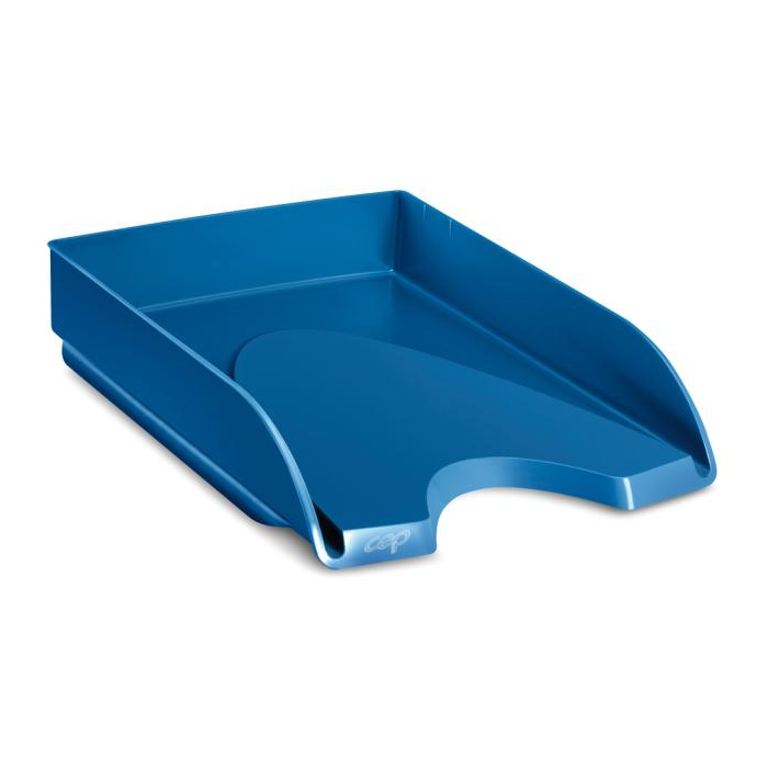 Elegantný, praktický a veľmi robustný široký odkladač na veľké dokumenty. Široký čelný výrez na ľahké vyberanie obsahu, dve bočné držadlá. Vertikálne stohovanie alebo stohovanie stupňovito dozadu. Materiál recyklovateľný polystyrén odolný voči nárazom. Rozmery 365 × 387 × 115 mm. Väčšie balenie 6 ks. Farba modrá