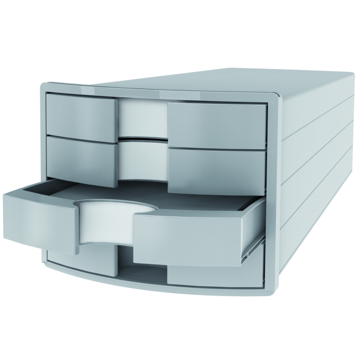 Box so štyrmi zatvorenými zásuvkami v tvare počítačového monitora.Rozmery (š × v × h) 294 × 235 × 368 mm.